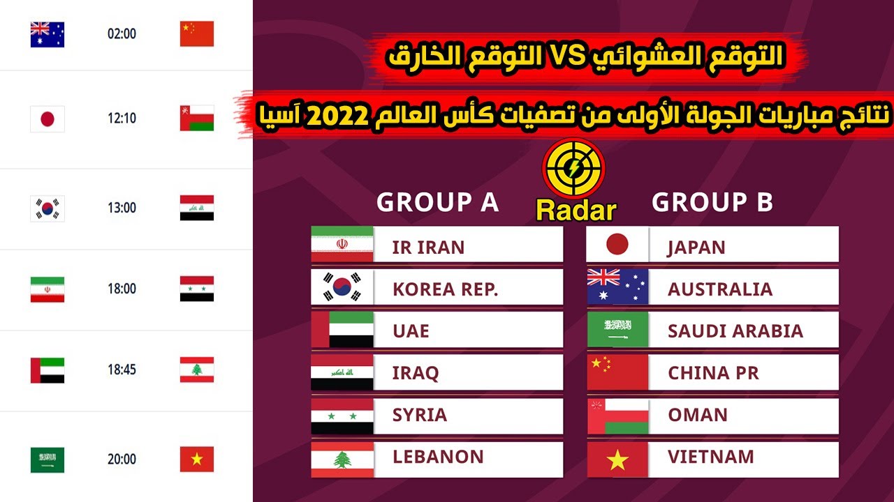 التوقع العشوائي والخارق لنتائج مباريات الجولة الأولى من تصفيات كأس العالم 2022 آسيا Youtube