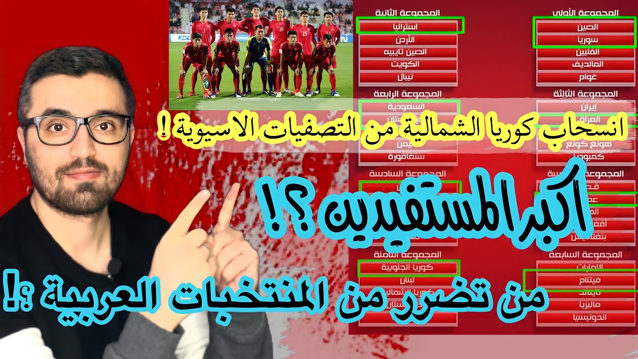 حظوظ المنتخبات العربية في تصفيات اسيا بعد انسحاب كوريا الشمالية منتخبات استفادت واخرى امورها صعبة Youtube